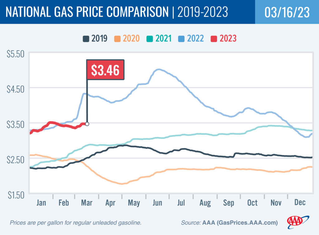 National Gas Price Comparison for March 16, 2023